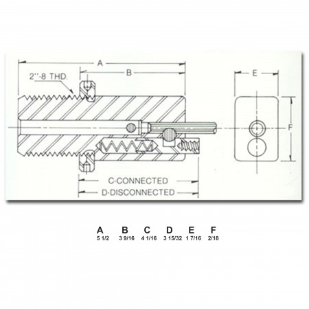 Pin type pull heads are used to handle broaches less than 1/2″ in diameter. The broach shank is securely held in position by spring pressure on the cross pin. Removal is effected manually by a slight pressure on the cross pin. Automatic release is provided by a plunger above the broach bore, causing the cross pin to recede on contact with a preset stop. For radial broach positioning, index cross keys are inserted into the pull head to provide proper alignment. View the Round Pin Type Broach Pull Head Size Chart and Cross Section Drawing.