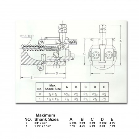 Designed primarily for keyway broaches or types of broaches using rectangular shanks, this pull head can be manually or automatically operated. Proper pulling alignment is assured as the head holds the broach in position against flat surfaces and provides a positive broach locking action. The keyway broach pull head is built in two sizes, the number (0) for broach shanks up to a maximum 3/4″ x 3/4″ and the number (1) head for shanks with a maximum of 1 1/2″ x 1 1/2″. View the Horizontal Keyway Puller Size Chart and Cross Section Drawing.